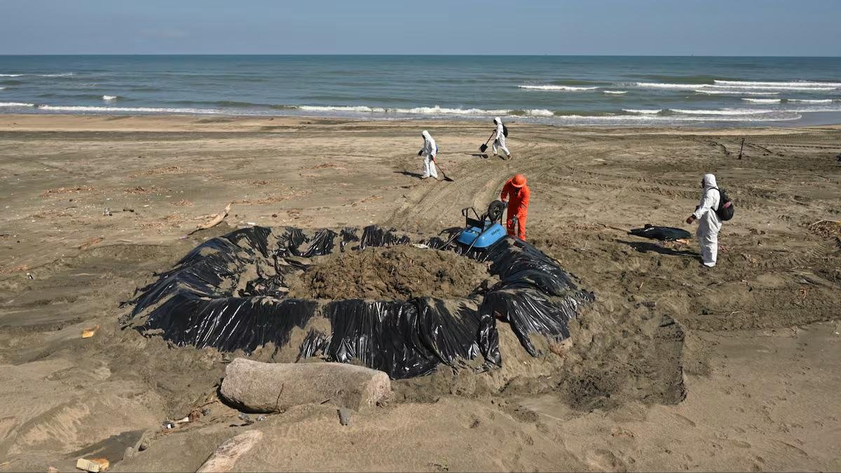El derrame de petróleo que comenzó en playas de Veracruz se ha extendido en al menos 170 kilómetros sobre el litoral, provocando afectaciones en las costas de Tabasco.
