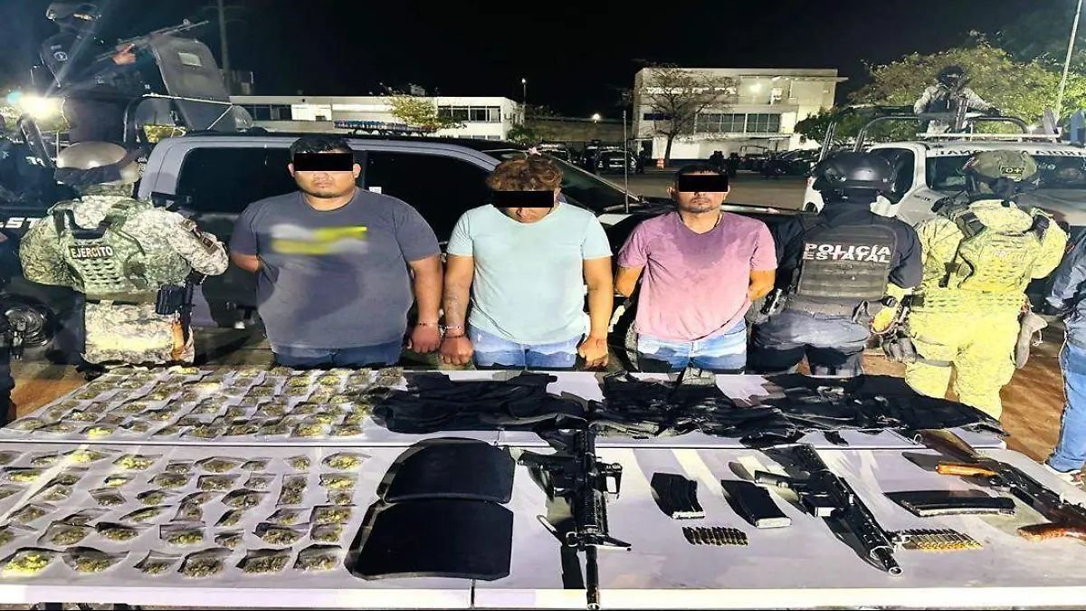 Por otro lado, en una acción adicional, otros tres individuos fueron detenidos también en Centro, junto con el aseguramiento de tres armas largas, diversas dosis de marihuana, tres chalecos antibalas, dos placas balísticas y dos vehículos.