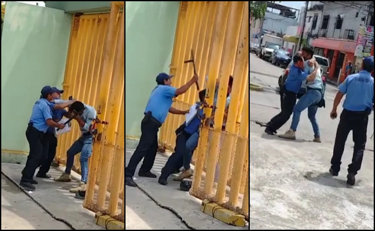 Elementos de seguridad del Instituto Tecnológico de Villahermosa fueron grabados cuando golpeaban a un estudiante de esta casa de estudios, a quien no dejaron ingresar a estas instalaciones.