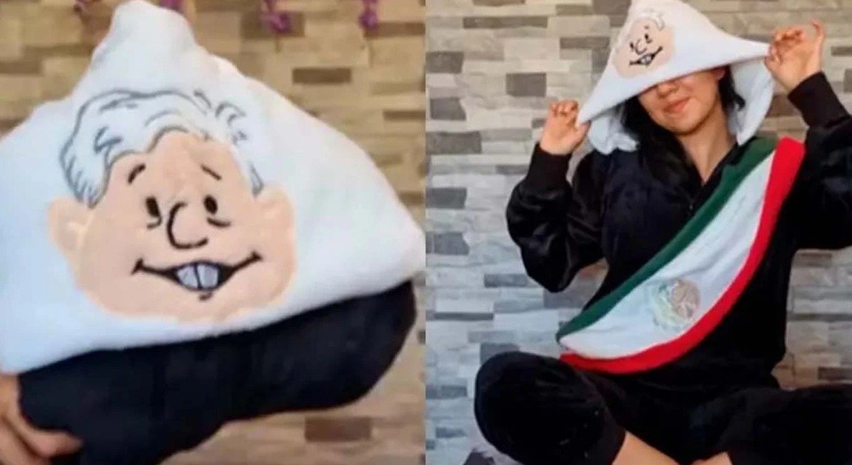 La joven diseñadora Wendy Arana ha causado sensación en TikTok al compartir un video en la cuenta @wen_arana, en el que luce una pijama inspirada en el presidente de México, Andrés Manuel López Obrador. La prenda, de peluche color negro, destaca por su capucha con el rostro del mandatario y una banda presidencial cuidadosamente detallada.
