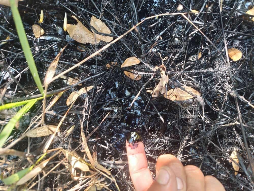 En las imágenes compartidas por los habitantes se logra percibir una gran mancha de crudo en las áreas verdes del rancho señalado e incluso, existe el temor de los habitantes que con las altas temperaturas puedan registrarse una quema en el lugar.