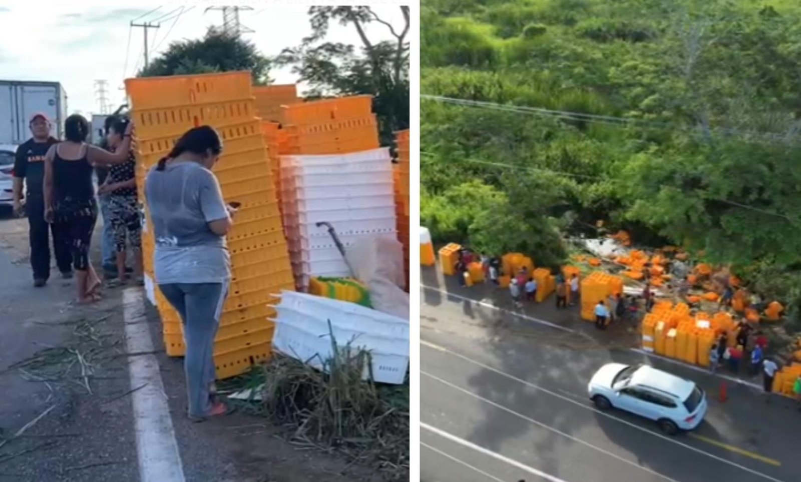 Sin saber bien a bien para qué les podrían servir, los lugareños se apoderaron de cientos de charolas de plástico, es decir hicieron rapiña luego de que el tráiler quedara al lado del camino.
