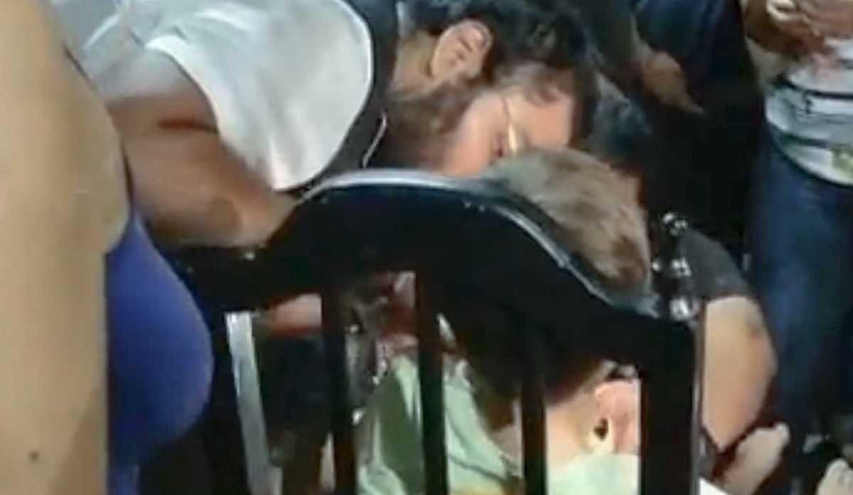 Después de entrar y quitarle la cadena y los candados, lo sentaron en una silla fuera de la vivienda para calmarlo y revisarlo, un familiar del niño que se identificó como su tío llegó y se lo llevó.