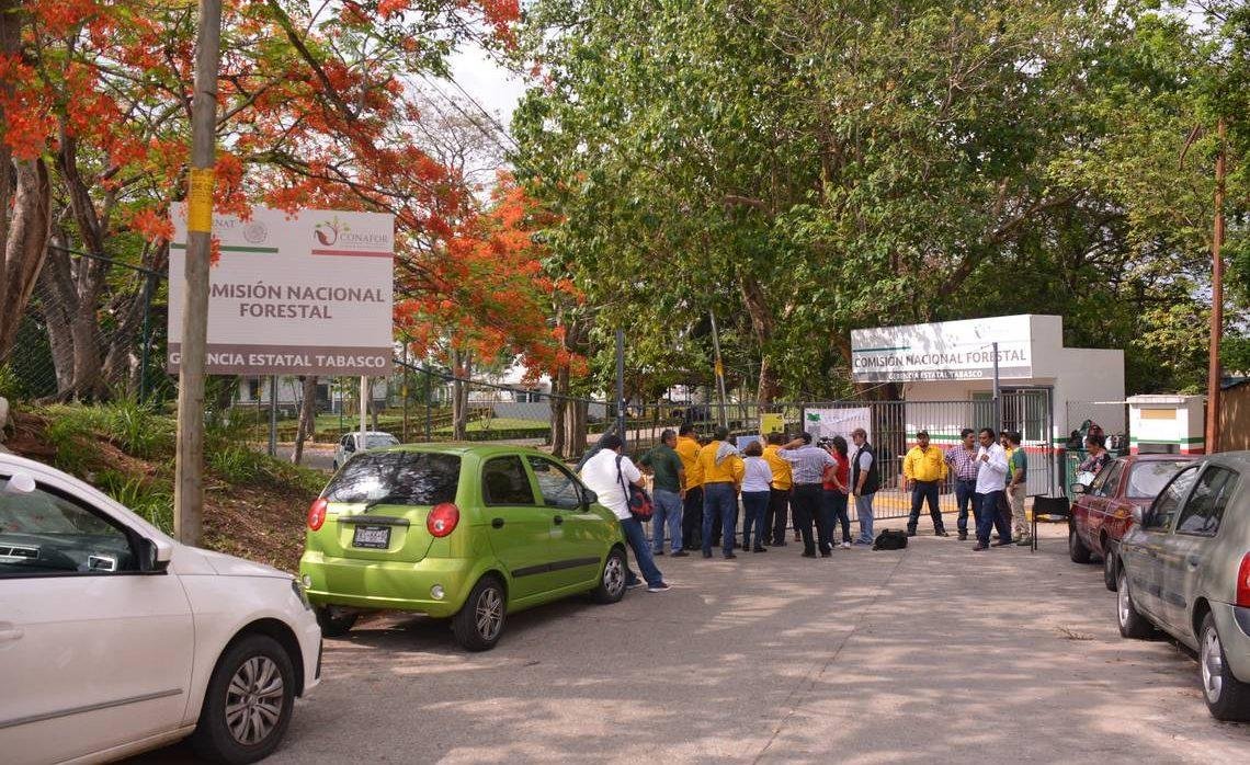 Trabajadores de la Comisión Nacional Forestal (Conafor) cerraron este miércoles 18 de enero del 2023 la delegación en Villahermosa, exigiendo que les den equipamientos para realizar su trabajo y que debieron entregarles el año pasado.