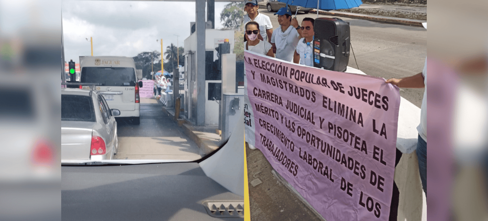 Un grupo de trabajadores del Poder Judicial de la Federación continúa con su protesta contra la aprobada reforma acusándola de un golpe al estado, por tal motivo, extendieron su manifestación obstruyendo temporalmente el libre paso de automovilistas en la caseta de cobro ubicada sobre la carretera Villahermosa-Macuspana.